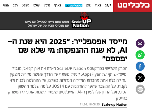 פודקאסט ScaleUp Nation החדש מבית כלכליסט מספר את סיפור חברות הביג-טק הישראליות. בפרק השלישי, מנכ״ל AppsFlyer משתף על הדרך שעשה מקרית מוצקין ועד להובלת אחת מחברות המדידה הגדולות בעולם, על ההחלטה לבנות ולא לקנות, על המשבר שהפך להזדמנות עם iOS14, על מה שלמד מהשוק הסיני, ועל החזון שלו לעידן ה-AI והאייג'נטים שעתיד לשנות את כללי המשחק בהייטק